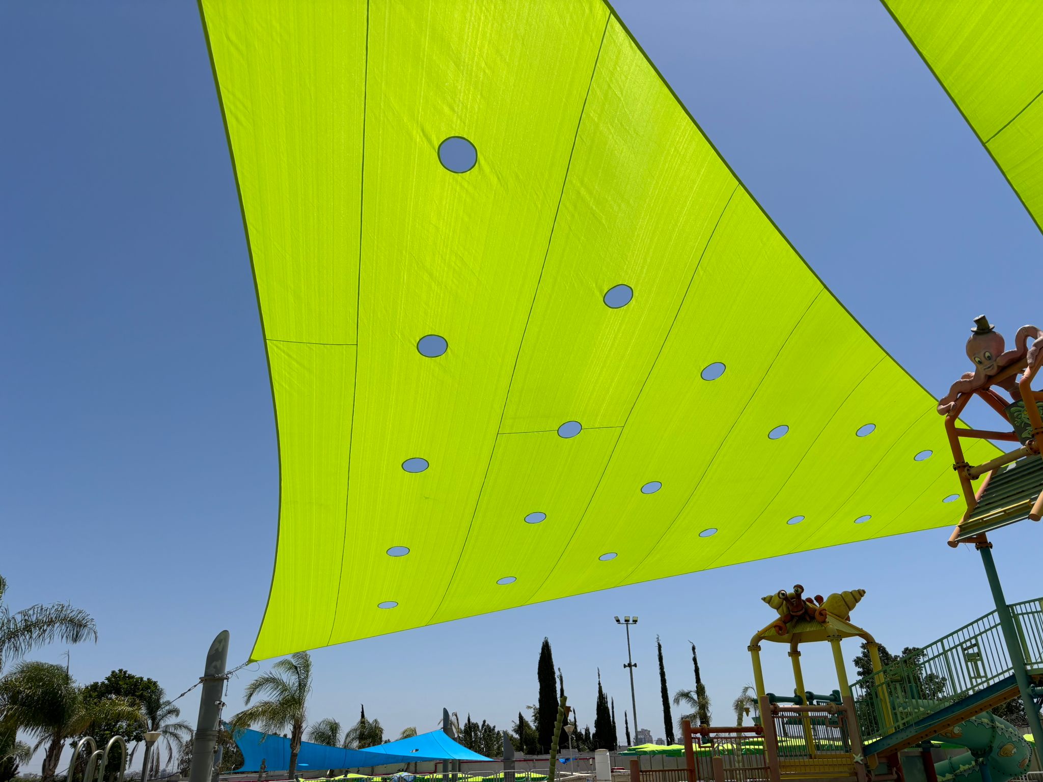 במסגרת הפרויקט, ביצענו תפירת רשתות צל באיכות גבוהה, במשקל 325 גרם ובגוון ירוק מרקר מסוג היפרבולי. הרשתות כוללות איבזור למתיחה, כבלים ומותחנים, והן תוכננו בהתאם לדרישות ייחודיות של הלקוח, עם צורות מיוחדות המותאמות לצרכים הספציפיים של הפרויקט.
