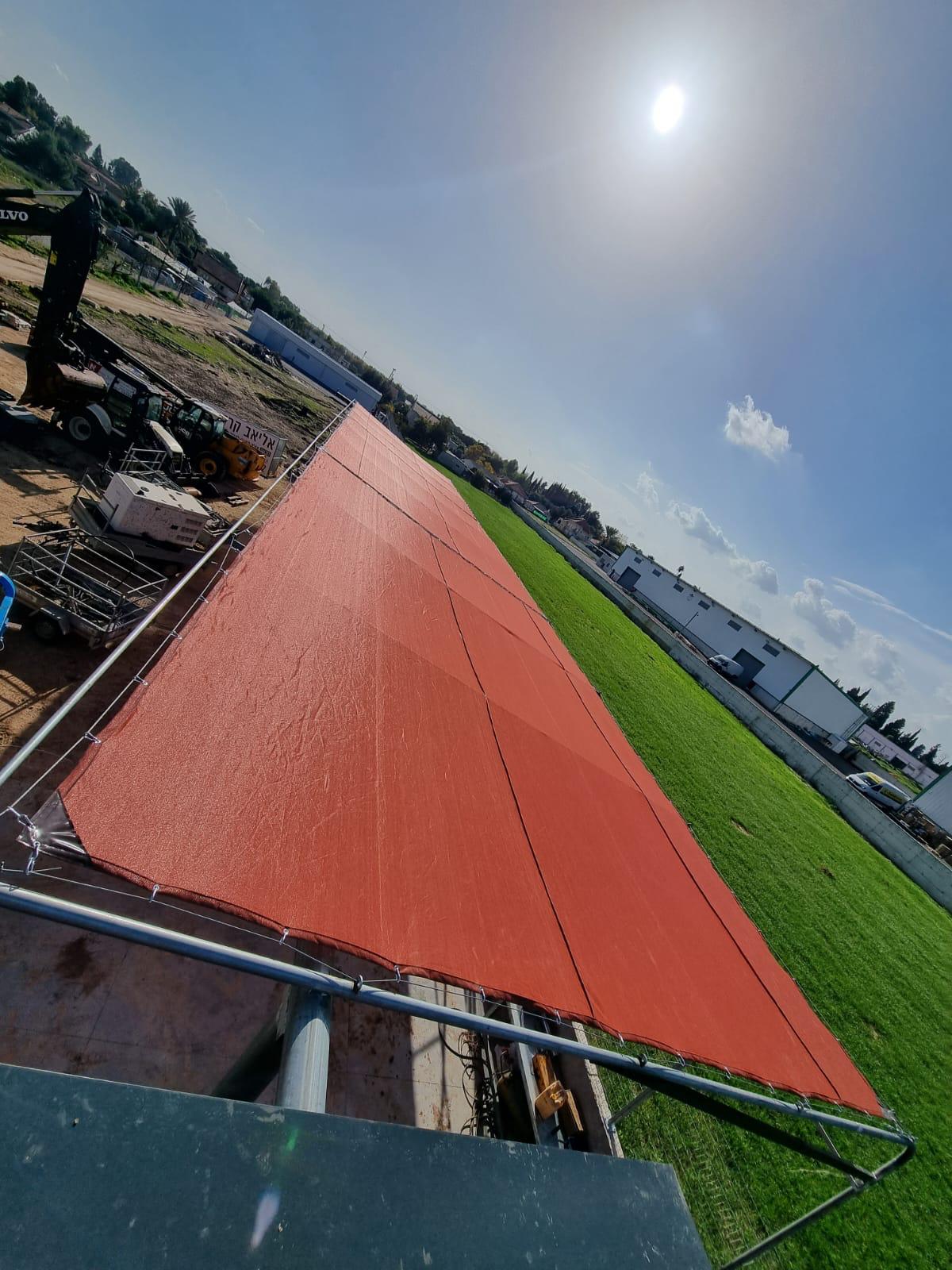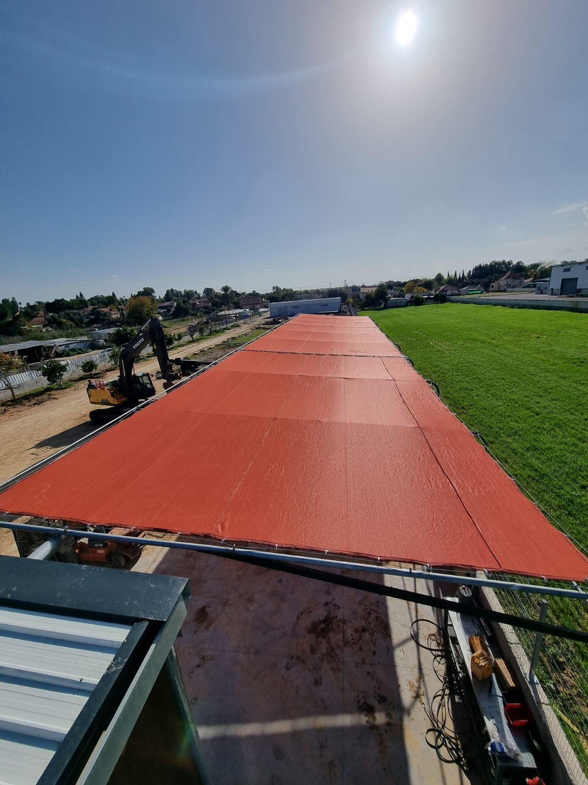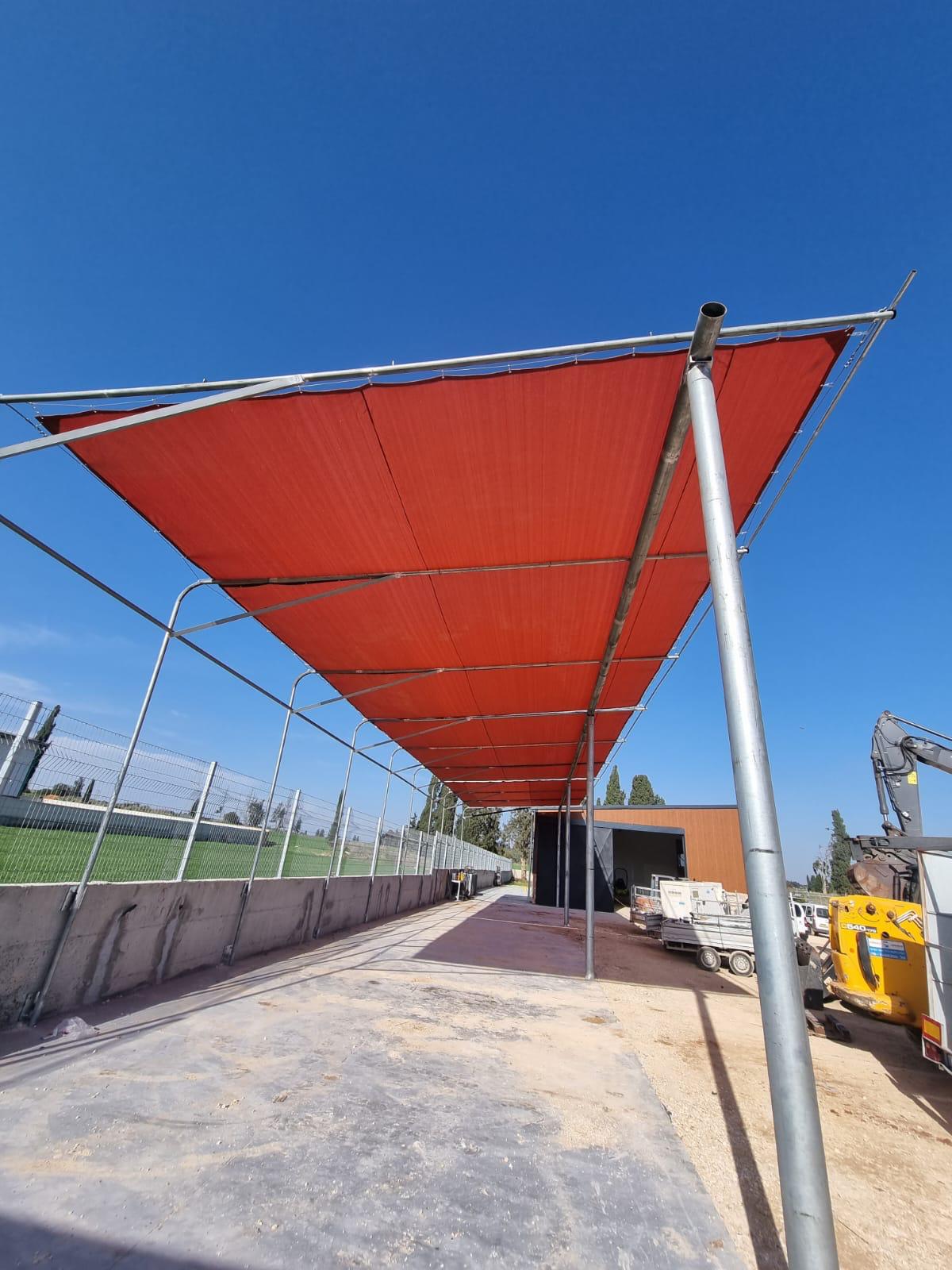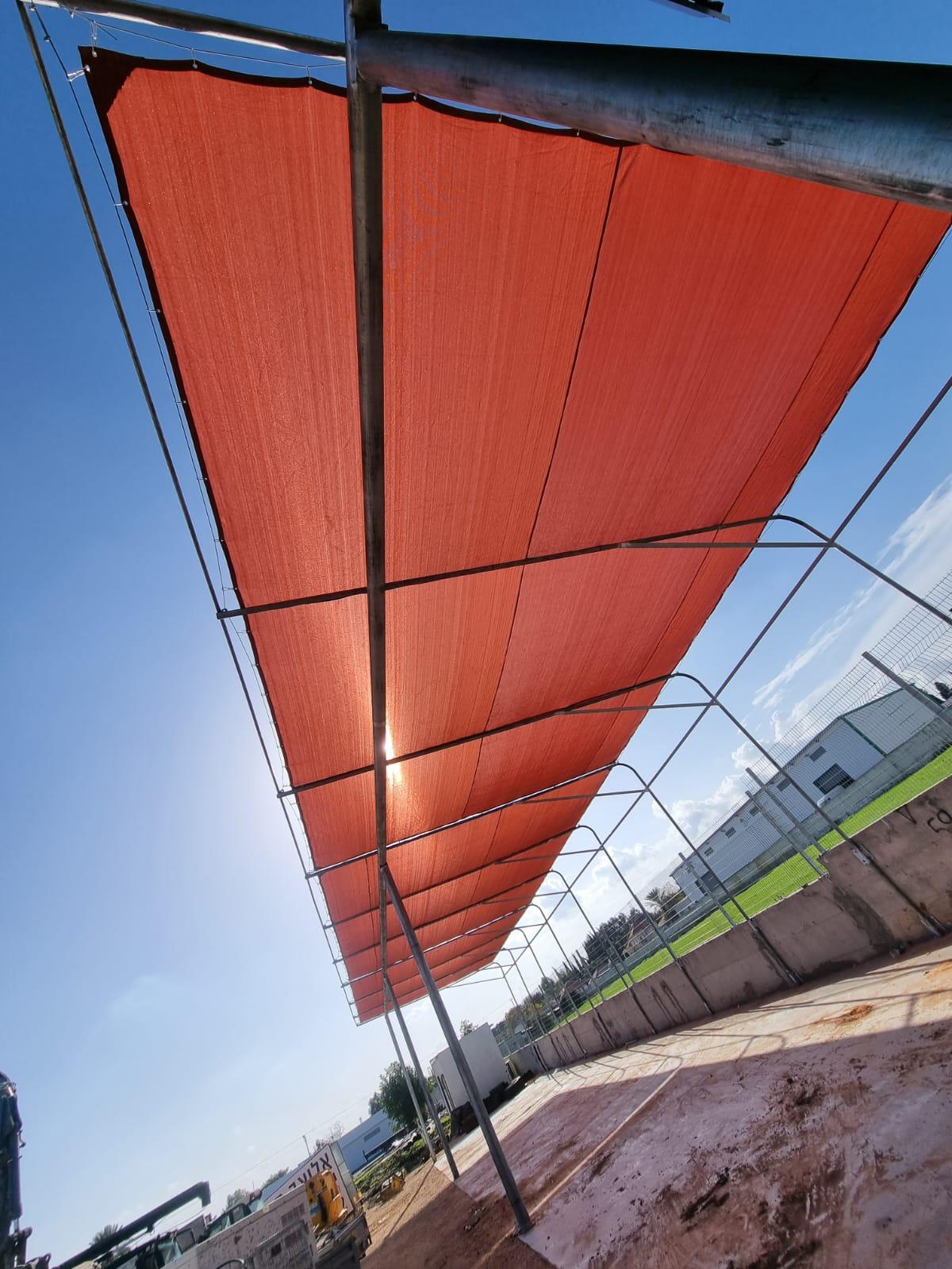 במסגרת הפרויקט, ביצענו תפירה והתקנה של רשת צל במשקל 325 גרם בגוון טרקוטה. הרשת הותקנה על ידי מתקין חיצוני, תוך שימוש בקונסטרוקציה ייחודית שנועדה להבטיח יציבות ואורך חיים.